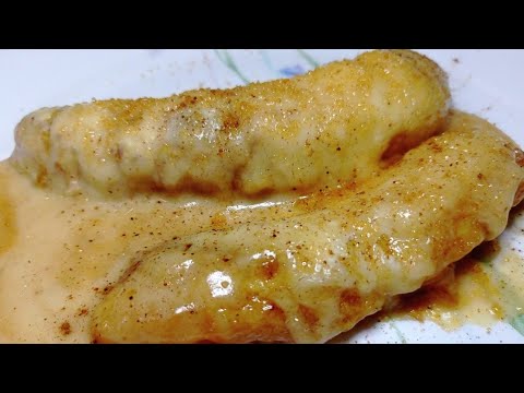 En una sartén ponemos aceite, 3 cucharadas de mantequilla y azúcar también 3 cucharadas. Dejamos a fuego alta hasta que se derrita. Luego añadimos los bananos. Rociamos azúcar a los bananos y dejamos freír 3 minutos, se voltean y se añade azúcar por el otro lado. Cuando cambie de color los espolvoreamos con canela.
